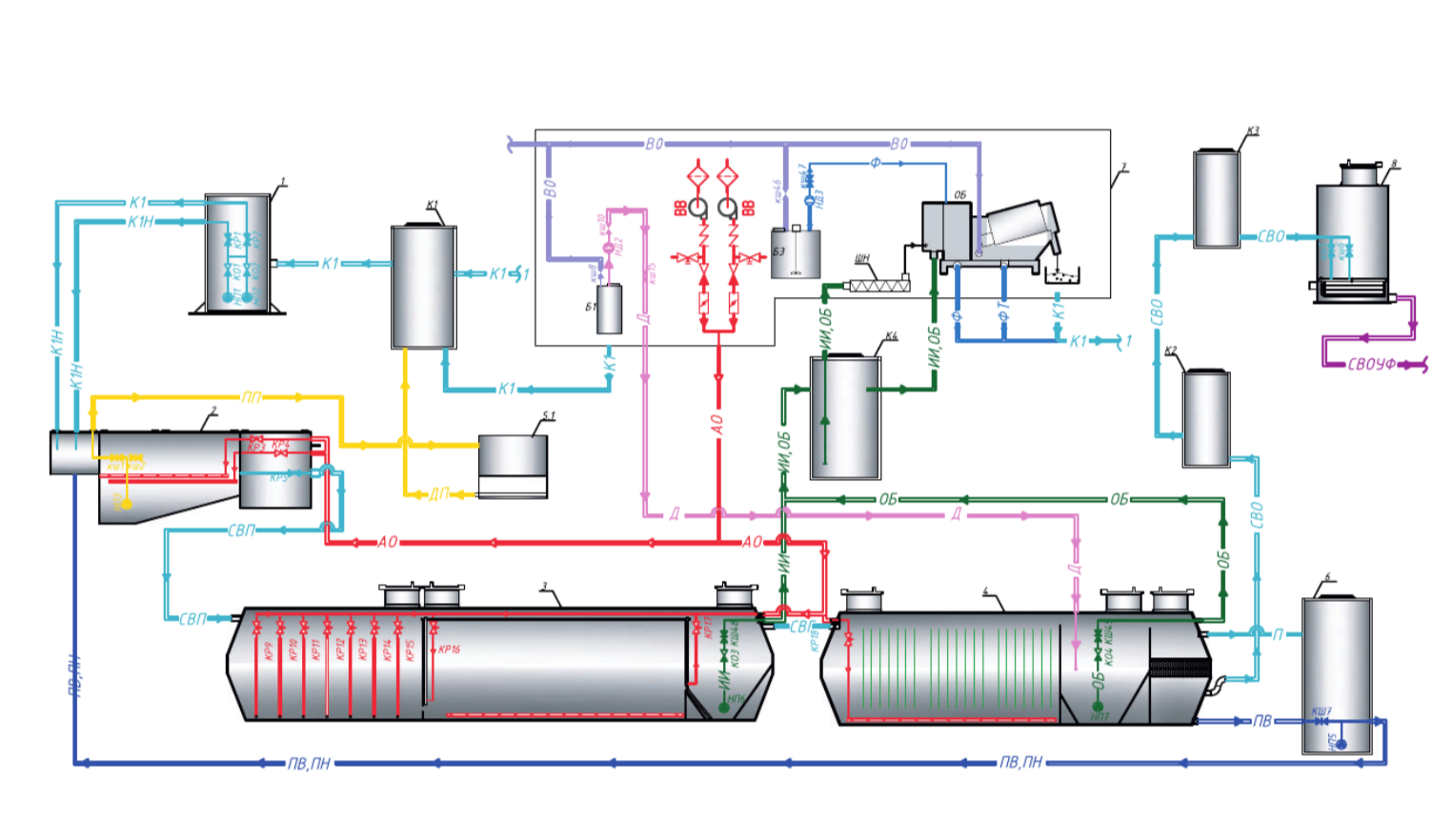 • БИОЛОГИЧЕСКАЯ ОЧИСТКА с процессами нитрификации-денитрификации.